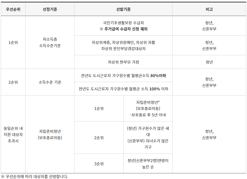 - 2순위: 소득 80% 이하, 자녀 수 많을수록 유리