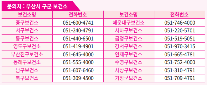 ☎ 부산시 구·군 보건소 연락처